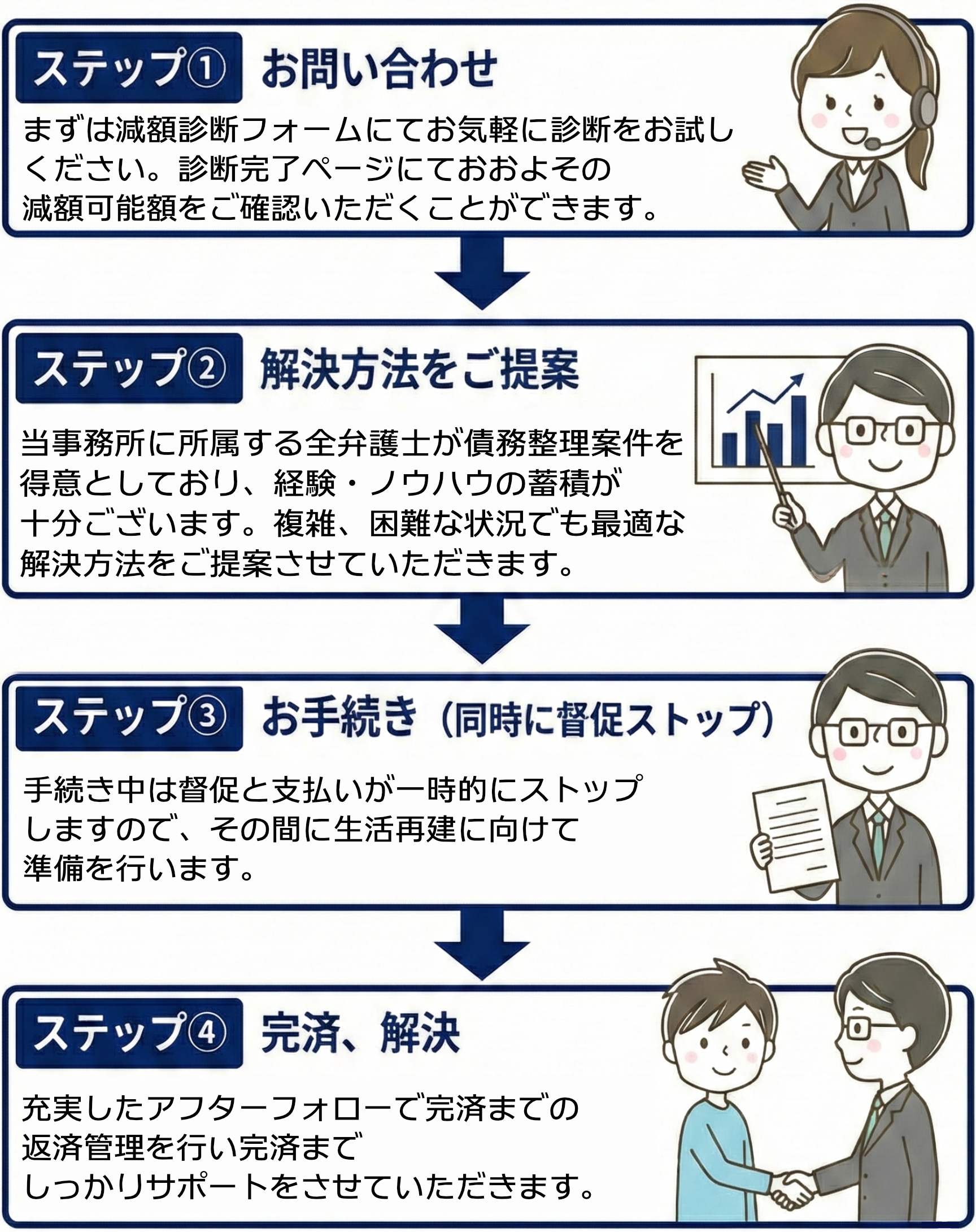借金問題でお困りの方へ向けて、無料で利用できる借金減額診断サービスを提供しています。